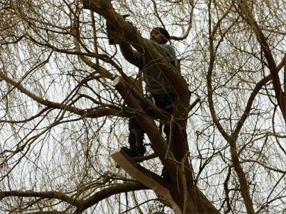 S’il doit abattre un arbre, il le coupe depuis le sol sans endommager votre pelouse. Il coupera le bois sur place ou l’emmènera au parc de recyclage.